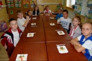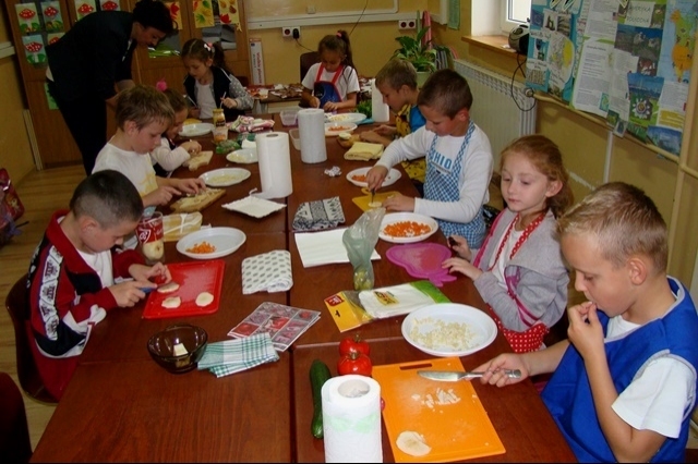 Dzieci samodzielnie kroiły i przyrządzały sałatkę warzywną przestrzegając zasad bezpieczeństwa przy posługiwaniu się nożem. Przyrządzanie sałatki dało im wiele satysfakcji. Podczas pracy uczniowie nauczyli się również, że gotowanie i jedzenie wymaga zachowania szczególnej higieny, że nie tylko ręce, ale również warzywa należy myć przed obieraniem, krojeniem i spożywaniem.