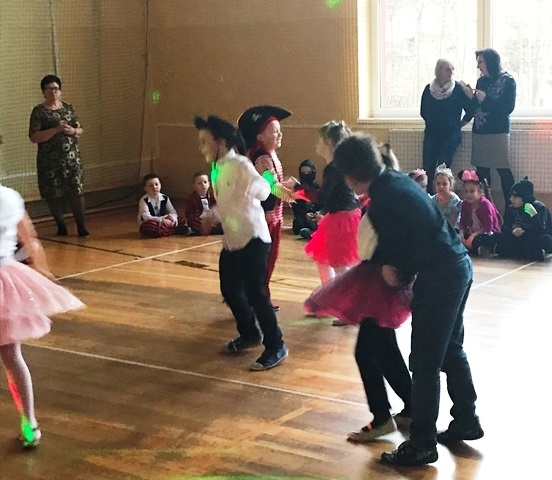 Wszyscy uczniowie bawili się znakomicie, dzięki Panu Wodzirejowi, który uświetnił nasz bal różnorodną muzyką. Były pociągi, kółeczka i tańce w parach. Uczniowie mogli także uczestniczyć w zabawach i konkursach np.: w podawaniu „tajemniczego pudełeczka”, tańcu w parach Rock& Rolla, czy „Gorących krzesłach”. Zwycięzcy konkursów nagrodzeni zostali słodyczami. Kiedy czas zabawy dobiegł końca, dzieci z żalem opuszczały salę balową. Ten dzień dostarczył im wielu przeżyć i miłych wrażeń.