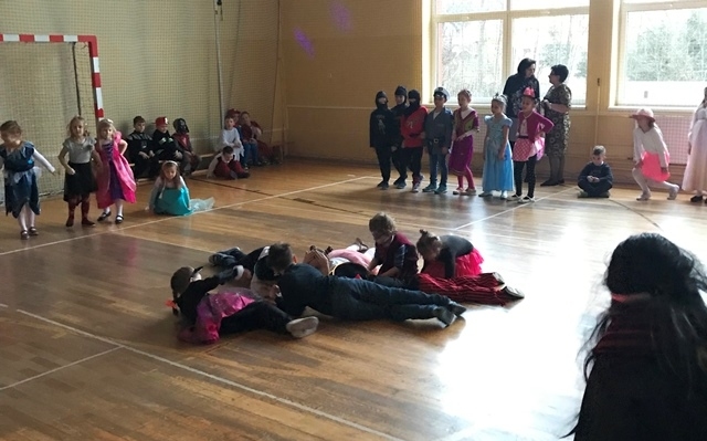 18 stycznia w naszej szkole odbył się bal karnawałowy dla klas 0-III. Zabawę rozpoczęliśmy tradycyjnie uroczystym polonezem. Dzieci wystąpiły w ciekawych, kolorowych kostiumach, przebrane za bohaterów znanych bajek i nie tylko.