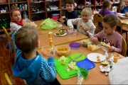 21 marca na przedszkolaki z grupy 0-1 i 0-2 czekało wiele atrakcji. Z okazji Pierwszego Dnia Wiosny dzieci wykonywały ciekawe prace plastyczne o tematyce wiosennej oraz zdrowotnej, co pozwoliło na utrwalenie zalet spożywania owoców i warzyw. Ponadto podczas śniadania wszyscy mieli okazję samodzielnie wykonać przepyszne owocowe szaszłyki, które zawierały mnóstwo witamin.