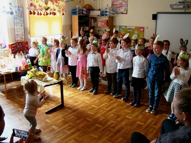 27 marca w oddziałach przedszkolnych odbyło się spotkanie wielkanocne, na którym gościliśmy wicedyrektora szkoły Annę Golonka oraz rodziców. Z okazji zbliżających się Świąt Wielkanocnych dzieci z grupy 0-1 i 0-2 przygotowały program artystyczny.