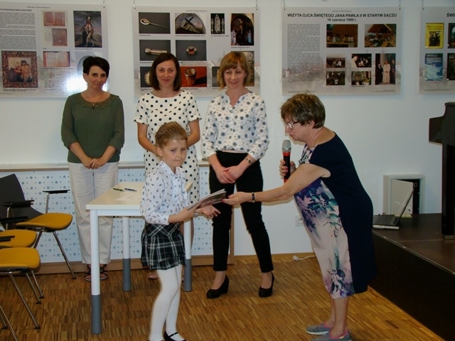 7 maja trzy dziewczynki z oddziałów przedszkolnych naszej szkoły, wyłonione na eliminacjach szkolnych: Kasia Gał z oddziału 0-1, Izabela Kowalczyk i Julia Pulit z oddziału 0-2 uczestniczyły w gminnym etapie konkursu „Przedszkolne wierszyki” zorganizowanego przez Powiatową i Miejsko-Gminną Bibliotekę Publiczną im. Wiktora Bazielicha w Starym Sączu.