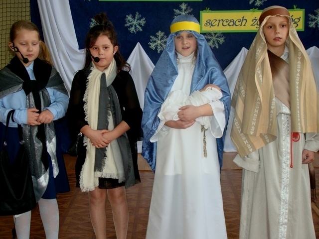 Uroczystość rozpoczęło przedstawienie jasełkowe pt. „Białe miasto”. Dzieci z klasy II pod kierunkiem wychowawczyni p. Barbary Stelmach i s. Hanny Grzegorczyk zaprezentowały wzruszającą historię, która wydarzyła się w pewnym miasteczku przygotowującym się do Świąt Bożego Narodzenia.
