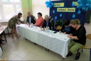 Dzieci z klasy II i III przygotowały inscenizację oraz piosenkę o wodzie. Po krótkiej części oficjalnej i artystycznej przyszedł czas na etap finałowy konkursów. Na sali gimnastycznej dzieci z klas I – IV rozpoczęły zmagania w konkursie plastycznym. W sumie z klas I – IV 23 osoby pracowały nad swoimi pracami. Zadaniem konkursowym było wykonanie przez uczestnika pracy plastycznej określoną techniką w wyznaczonym czasie. Uczestnik Konkursu posługując się pastelami olejnymi wykonywał samodzielnie w czasie 45 min. pracę plastyczną w formacie A-3. Pomysłów było mnóstwo a czas szybko mijał. W tym samym czasie pod okiem jury i gości uczniowie klas starszych walczyli o jak najlepszy wynik w konkursie wiedzy. Łącznie do zmagań przystąpiło 35 uczniów w kategorii klas V – VI i VII – VIII. Na początek 5 – osobowe drużyny z każdej klasy musiały rozwiązać krzyżówki i wykreślanki. Na wykonanie zadnia było tylko 5 minut. Każda minuta była cenna. Do decydującej fazy przeszło w sumie 16 osób, po 8 z każdej kategorii. Uczniowie mieli za zadanie ułożyć logo Sądeckich Wodociągów oraz Akademii Wodnika, a także odpowiedzieć na pytania, które wylosowali przebijając balony. Oprócz rywalizacji była też dobra zabawa. Wszyscy świetnie się bawili emocji nie było końca. Konkursy to dobra okazja, aby promować wśród dzieci wiedzę ekologiczną, wzbogacać wiedzę o znaczeniu wody w życiu człowieka, rozwijać aktywność plastyczną a także umożliwić prezentację talentów.