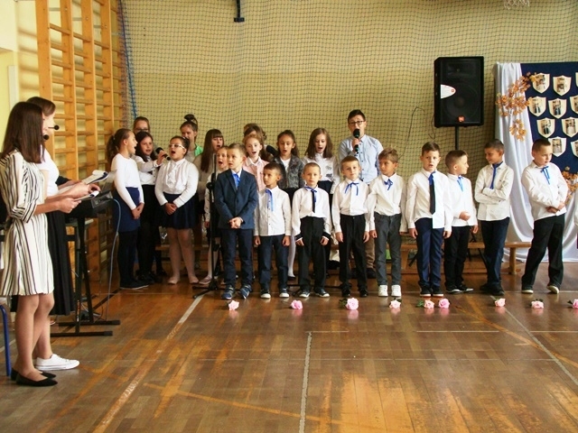 Pomimo braku szerokiej publiczności dzieci z klasy pierwszej - pod kierunkiem wychowawczyni p. Barbary Stelmach - zaprezentowały piękny program artystyczny i wspaniale zatańczyły poloneza. Oprawę muzyczną ślubowania zapewnił p. Krzysztof Smyda ze szkolnym zespołem wokalnym, a prowadzącymi całość wydarzenia były przedstawicielki Samorządu Uczniowskiego: Alicja Nieć z klasy VIII oraz Marlena Radomska z klasy VIIa.