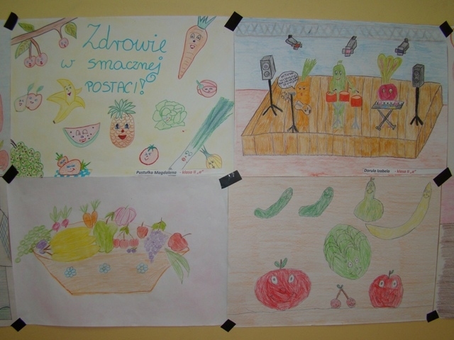 Na początku marca w klasach I-III ogłoszony został konkurs plastyczny pod hasłem „Warzywa i owoce mają głos”. Uczniowie wykonali ciekawe i kolorowe plakaty z hasłami i wierszykami zachęcającymi do częstego spożywania owoców i warzyw. Jury konkursowe miało wiele trudności z wybraniem najciekawszych prac, ponieważ wiele plakatów było bardzo pomysłowych i oryginalnych. Jednak po naradzie ustalono: