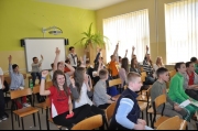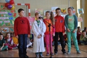 W drugiej części poszczególne klasy odgrywały scenki tematycznie nawiązujące do promocji zdrowia. Świetnie zaprezentowały się wszystkie klasy, co potwierdziły gromkie oklaski po każdym występie. Dalej odbył się konkurs na najbardziej pomysłowe przebranie. Do rywalizacji przystąpiło kilkunastu uczniów z różnych klas. Ich stroje prezentowały się wspaniale. W wyniku głosowania, w którym uczestniczyli wszyscy obecni na sali, wyłoniono dwie główne nagrody. Przyznane one zostały Oldze Mrowca z klasy IV oraz Joannie Stawiarskiej z klasy VI, trzecie miejsce zajął Krzysztof Citak z klasy IV. Zwycięzcy otrzymali kosze owoców. Potem rozegrano jeszcze turniej wiedzy na temat zdrowego odżywiania, w którym nagrodami były smaczne owoce: jabłka, gruszki i mandarynki.