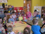 31 marca 2014 r. gościliśmy na zajęciach panią Marię Ogorzały. Na zajęcia przybyły również niektóre mamy. Pani Maria pokazała i objaśniła nam jak wykonać piękne kwiaty z bibuły i krepiny. Na zajęciach każde dziecko własnoręcznie wykonało duży bibułkowy kwiat i krokusy. Zajęcia były bardzo ciekawe.