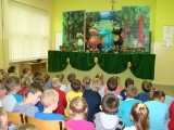 Klasy 0-III obejrzały również przedstawienie teatru Bajka o tematyce ekologicznej pt. „Wielkie sprawy małej żaby”.