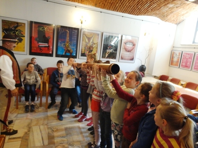 Dnia 23.04.2015r. klasa 2 i 3b odbyły wycieczkę do Nowego Sącza do kina "Sokół" na warsztaty taneczno-muzyczne. Zajęcia te prowadził Pan Wojciech, który jest góralem. Na zajęciach opowiadał nam o różnych starych instrumentach np. skrzypotrąba, dudy, trombita. Na każdym grał i przy okazji śpiewał po góralsku. Zaskoczyło nas jak pięknie grał na najstarszym instrumencie świata, którym okazał się LIŚĆ! Kilku uczniów próbowało zagrać na liściu, jednak to bardzo trudna czynność. Podczas prezentacji instrumentów mogliśmy samodzielnie spróbować zagrać na nich kilka dźwięków. Pod koniec zajęć wykonaliśmy swoje piszczałki. Skonstruowaliśmy je z drewnianych patyczków, papierka, wykałaczki i gumek recepturek. Każdy je ozdobił i mógł zabrać do domu. Zajęcia te pogłębiły naszą wiedzę na temat kultury i dziedzictwa naszego regionu.