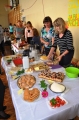 Jak co roku każda klasa przygotowała stoisko z domowymi potrawami. Swoje stoły zaprezentowały także organizacje szkolne: Wolontariat i Samorząd Uczniowski. Na stołach królowały podpłomyki, kołacze, sery, miody, babeczki, owocowe soki, galaretki i wiele innych pyszności. Rodzice zatroszczyli się, by było smacznie, zdrowo i kolorowo.