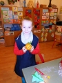 Na koniec dzieci wykonały kartki świąteczne z własnoręcznie napisanymi życzeniami. Tego typu działalność artystyczna wprowadziła wszystkich w świąteczny nastrój.