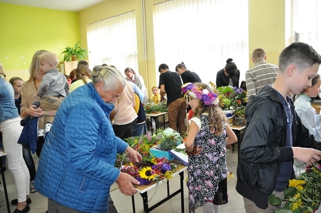 Każdemu dotychczasowemu jesiennemu festynowi w naszej szkole towarzyszył konkurs na najpiękniejszy bukiet złożony z ziół i kwiatów. Tym razem nastąpiło niewielkie zerwanie z tradycją. Odbył się konkurs, ale na najpiękniejszy zielny wianek wykonywany na miejscu. Drużynowy konkurs na wykonanie jesiennego wianka z darów natury przyciągnął wielu uczestników. W konkursie tym uczestniczyło kilkanaście klasowych grup, którym pomagały mamy, ciocie i babcie. Można było przypuszczać, że poziom konkursu przez zmianę regulaminu znacznie się obniży. Nic bardziej mylnego! Reprezentacje pokazały swoje mistrzostwo, a efekty ich prac przeszły najśmielsze oczekiwania. Wianki zachwycały kolorami, pomysłowością, a jury oceniające prace miało niewątpliwie problem w przyznaniu poszczególnych miejsc.