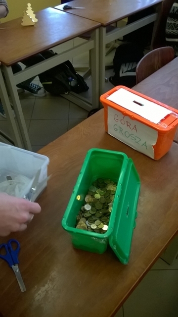 Jak co roku Wolontariat z naszego gimnazjum, włączając się w ogólnopolska akcję na rzecz Rodzinnych Domów Dziecka „Góra Grosza”, przeprowadził zbiórkę publiczną na ten cel. Przez kilkanaście dni Wolontariusze ze specjalnie przygotowanymi na ten cel puszkami zbierali podczas przerw grosze. Po zakończeniu procesu przeliczania monet jedno, dwu, piecio, dziesięcio i pięćdziesięciogroszowych okazało się, ze wartość zebrana w tym roku wyniosła 153 zł.