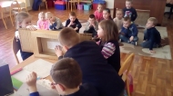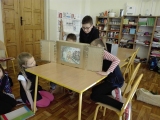 Grupy O-1 i 0-2 miały przyjemność oglądać przedstawienia przygotowane przez uczniów klasy 3b, którzy zaprezentowali m. in. „Dzikie łabędzie” H. Ch. Andersena. Dzieci z zaciekawieniem i uwagą śledziły losy bohaterów, ponieważ po raz pierwszy mogły brać udział w teatrze zamkniętym w małym, drewnianym pudełeczku.