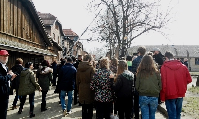 Nie było to jedyne miejsce o szczególnym znaczeniu dla każdego Polaka, które młodzież odwiedziła, gdyż po wizycie w Sanktuarium, uczniowie udali się do Oświęcimia, a konkretnie do Muzeum Auschwitz-Birkenau. O godzinie 10.45 rozpoczęli wędrówkę po miejscach związanych z bolesną historią Polaków i Żydów, gdzie podczas II wojny światowej śmierć poniosło ok. półtora miliona ludzi, w tym także dzieci. Wsłuchując się w słowa przewodnika, młodzież miała okazję przyjrzeć się z bliska eksponatom, stanowiącym niezbity dowód okrucieństwa, jakie dokonało się w tym miejscu, poznać mechanizm działań Niemców, w końcu poznać historię ludzi, których w brutalny sposób pozbawiono godności i odebrano wiarę w drugiego człowieka. Był to także czas refleksji nad losem pokolenia, któremu przyszło żyć w czasie II wojny światowej.