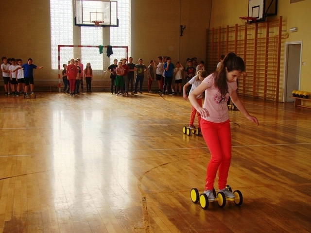 Kolejnym etapem naszego projektu były zawody sportowe. Pod okiem nauczyciela wychowania fizycznego reprezentanci klas wzięli udział w wyścigach rzędów (sztafeta biegowa, sztafeta przez płotki i inne), a reszta klasy mocno dopingowała swoich kolegów i swoje koleżanki z balkonu. W pocie czoła uczniowie starali się zdobyć jak najwięcej punktów na konto swojej klasy. Zwyciężyła klasa VI b.