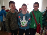 Po spotkaniu uczniowie pracując w grupach mieli za zadanie wykonać pracę z odpadów o tematyce przyrodniczej. Z ogromnym zaangażowaniem zabrali się do dzieła, którego efekty widoczne są na zdjęciach.
